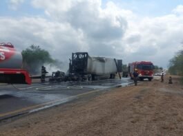 Tráiler se incendia en la Tampico-Mante; conductor logra ponerse a salvo